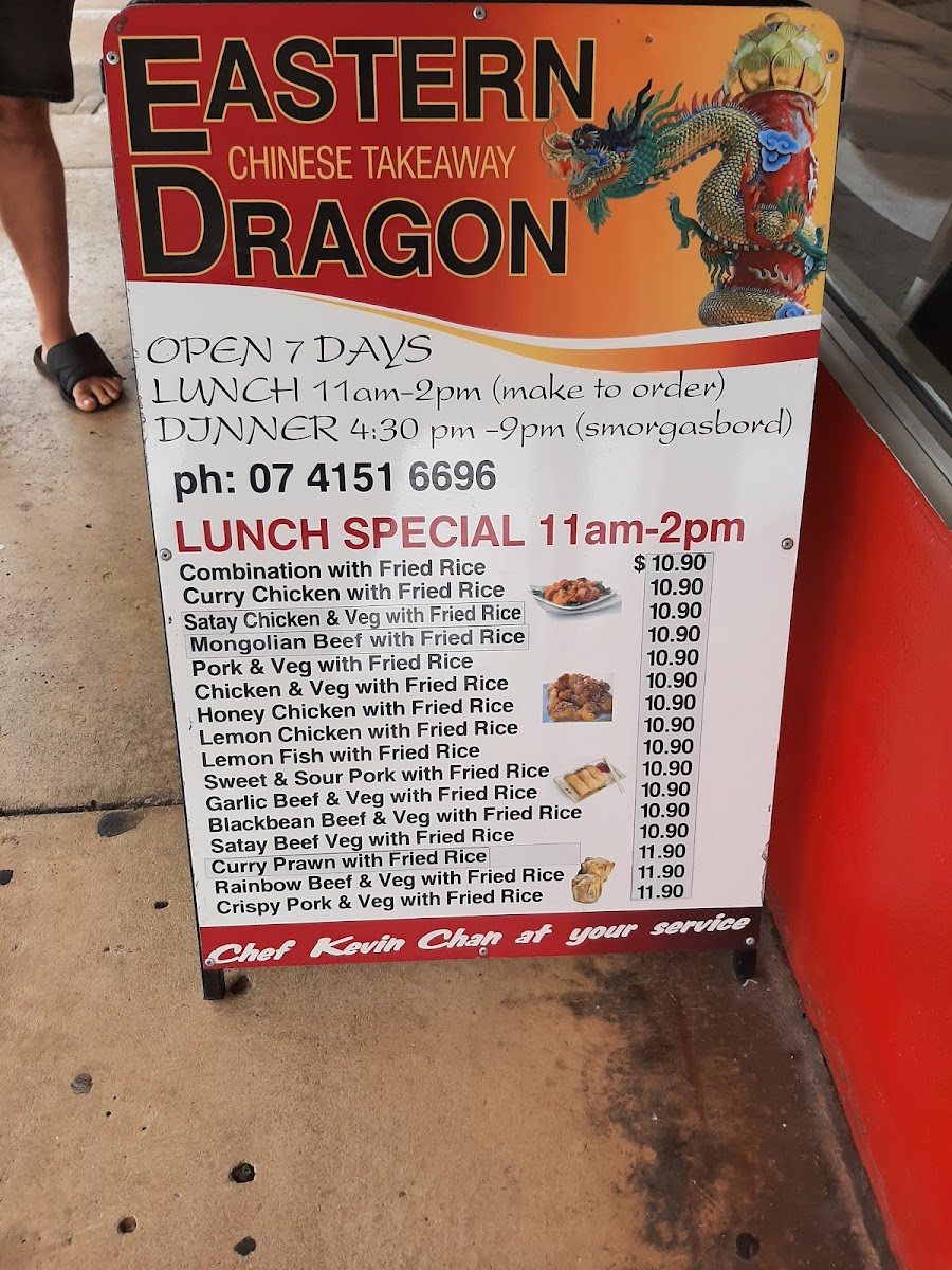 Eastern Dragon Chinese Takeaway in Bundaberg Central offers a vibrant menu rich in traditional Chinese flavors tailored for fast, satisfying meals. The highlight is their extensive lunch specials, featuring classics like Curry Chicken with Fried Rice, Mongolian Beef, and Honey Chicken, each served piping hot and packed with well-balanced flavors that avoid being too bland or salty. Customers consistently praise the variety and taste, with dishes such as Rainbow Beef and simple yet authentic Prawn Dumplings standing out.